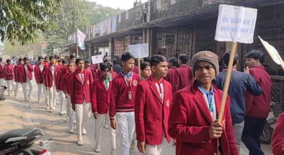 -बलरामपुर के उतरौला में निकाली गई जागरूकता रैली में शामिल छात्र ।-संवाद