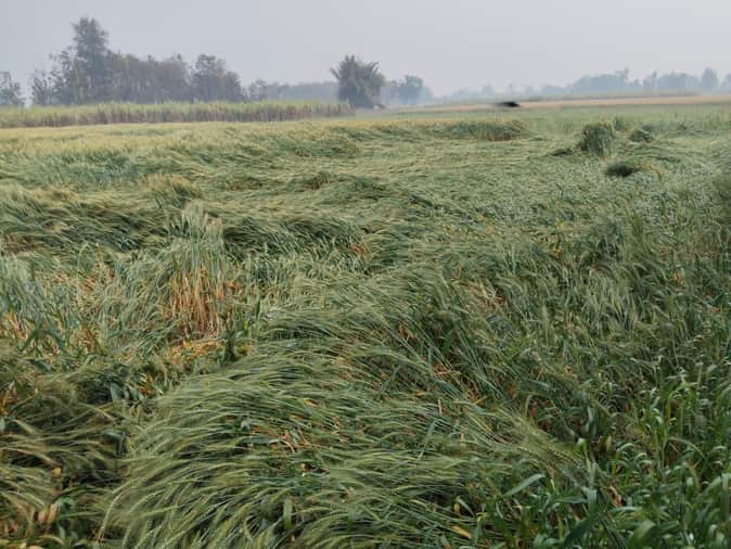 बलरामपुर के रेहरा बाजार में बारिश के बीच खेत में गिरी गेहूं की फसल ।-संवाद