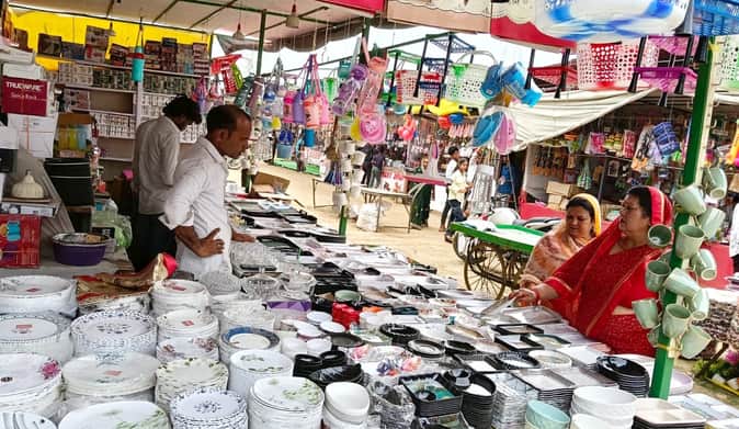 तुलसीपुर। देवीपाटन मंदिर परिसर में आयोजित ऐतिहासिक चैत्र नवरात्र मेले में श्रद्धा और भक्ति के साथ बाजार की रौनक भी चरम पर है। मां पाटेश्वरी के दर्शन-पूजन के बाद श्रद्धालु मेले में खरीदारी का आनंद ले रहे हैं। इस वर्ष मेले में क्रॉकरी बाजार खास आकर्षण का केंद्र बना हुआ है। यहां घर-गृहस्थी से जुड़ी वस्तुओं की खरीदारी के लिए भारी भीड़ उमड़ रही है।