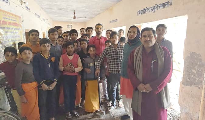 बलरामपुर के तुलसीपुर संस्कृत पाठशाला में मौजूद शिक्षक और बच्चे।-संवाद