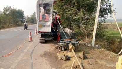 तुलसीपुर में मशीन से डाली जा ही फाइबर केबल। संवाद