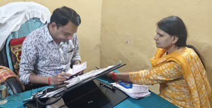 जिला होम्योपैथी चिकित्सालय में मरीज देखते चिकित्सक।