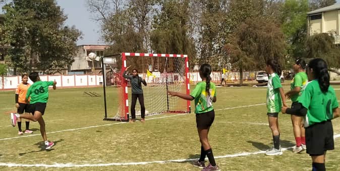 फोटो-17-बलरामपुर के स्पोटर्स स्टेडियम में हैंडबाल खेलते खिलाड़ी।-संवाद