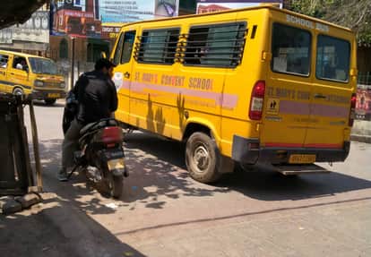 फोटो-11-बलरामपुर के एमएलके पीजी कॉलेज के पास से गुजरती स्कूली वैन ।- संवाद