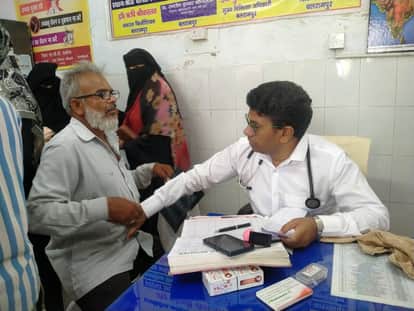 फोटो-22-बलरामपुर के जिला मेमोरियल अस्पताल में मरीज का इलाज करते चिकित्सक ।-संवाद