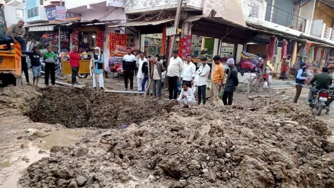 जल निगम द्वारा नई पाइपलाइन डालते समय पुरानी सीमेंटेड पाइपलाइन टूटने के बाद मरम्मत के लिए हनुमानगढ़ी चौराहा पर गड्ढा खोदा गया। इससे रविवार को भी यातायात बाधित रहा। मुख्य चौराहे पर खोदा गया गहरा गड्ढा रेलवे क्रॉसिंग के बिल्कुल पास होने के कारण आवागमन ठप रहा और दिनभर लोगों को जाम की समस्या झेलनी पड़ी।