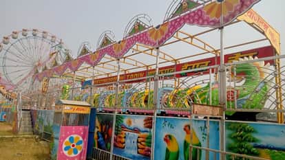 बलरामपुर के शक्तिपीठ देवीपाटन मेला क्षेत्र में लगाया जा रहा झूला ।-संवाद