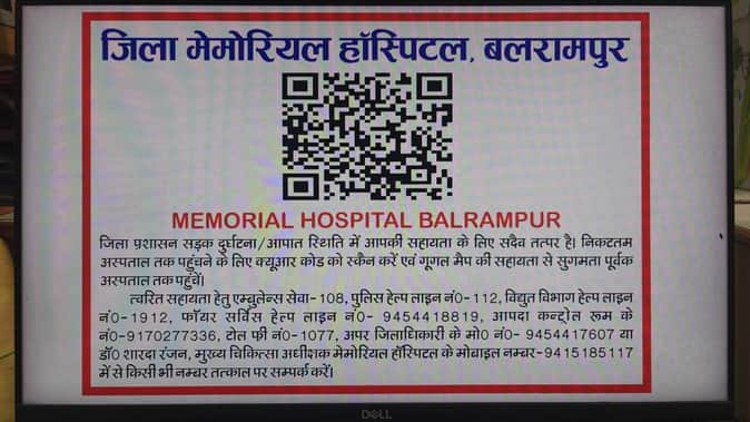 बलरामपुर। सड़क हादसों के घायलों के लिए अस्पताल व थाने की राह आसान करने की पहल की गई है। जिले में 19 ब्लैक स्पॉट सहित 55 सार्वजनिक स्थानों पर क्यूआर कोड चस्पा किए गए हैं। मोबाइल से क्यूआर कोड स्कैन करते ही घायलों को अस्पताल व थाने का पता चल जाएगा। साथ ही जरूरी हेल्पलाइन नंबरों की जानकारी भी हो सकेगी।