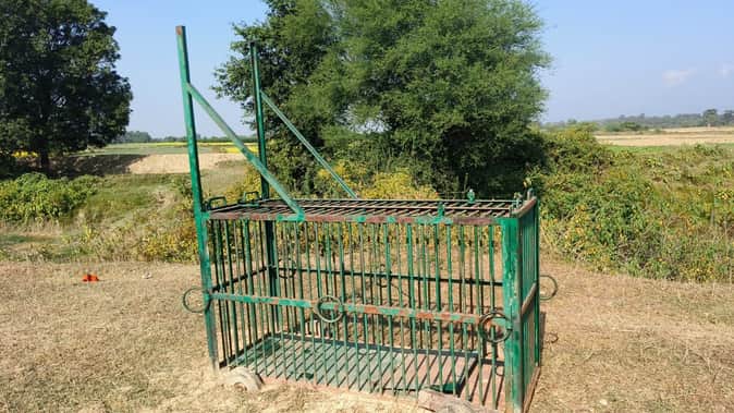 -बलरामपुर के रेहारपुरवा गांव में लगाया गया पिंजड़ा ।-संवाद