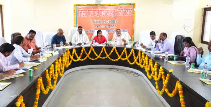 बलरामपुर के जिला पंचायत सभागार में आयोजित बैठक में मौजूद लोग ।5स्रोत : विभाग