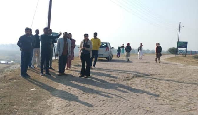 बलरामपुर स्थित चित्तौड़गढ़ जलाशय का निरीक्षण करती लखनऊ पर्यटन विकास की टीम। संवाद