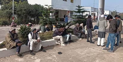 बलरामपुर के दीवानी न्यायालय परिसर में धूप में बैठे वादकारी।-संवाद