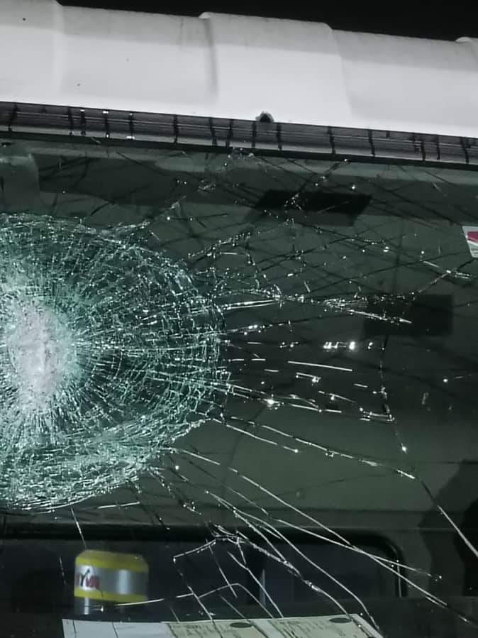 फोटो- 25 ट्रक के शीशे में मारी गई गोली का निशान। संवाद