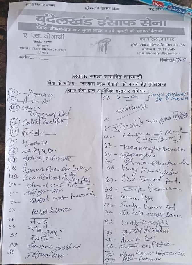 Banda News: राइफल क्लब मैदान को बचाने के लिए अब तक हुए 456 हस्ताक्षर