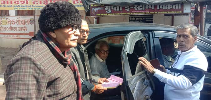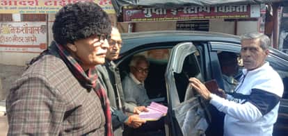 फोटो- 15 बीमार अधिवक्ता से गाड़ी में ही टेंडर वोट डलवाते इल्डर्स कमेटी के पदाधिकारी। संवाद