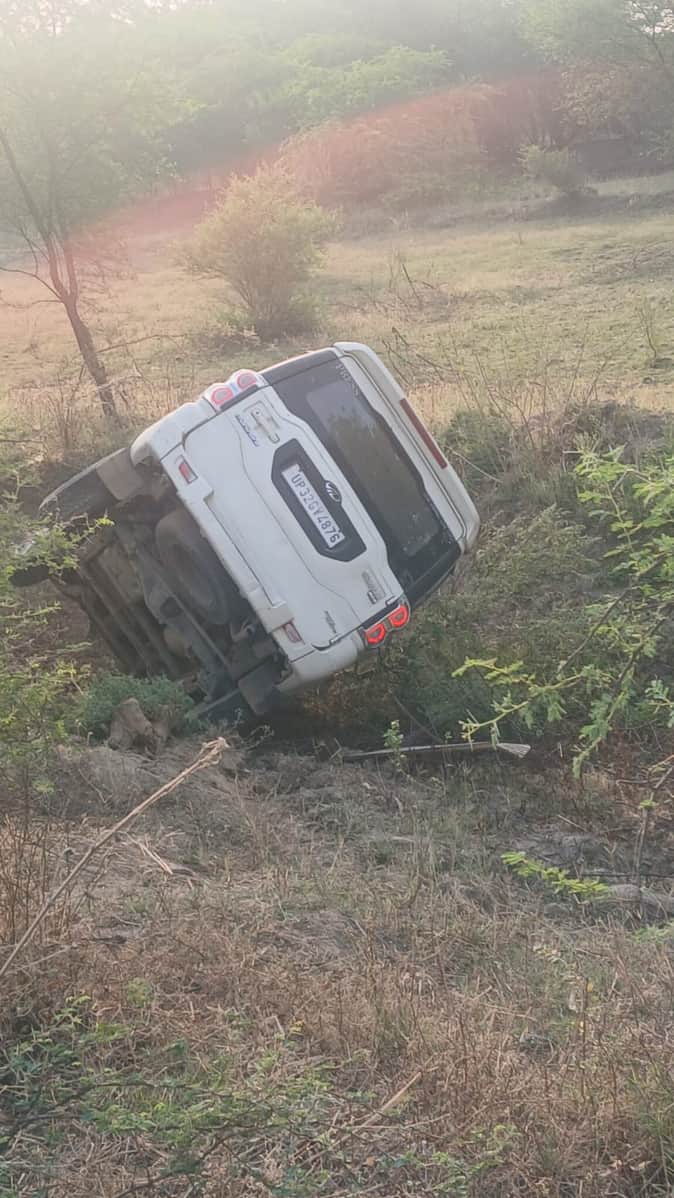 फोटो- 21 हादसे के बाद खंती में पड़ी स्कॉपियो। संवाद