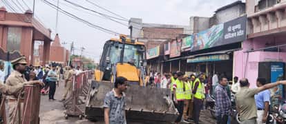 Banda News: रेलवे स्टेशन मार्ग पर गरजा बुलडोजर, हटाए गए कब्जे