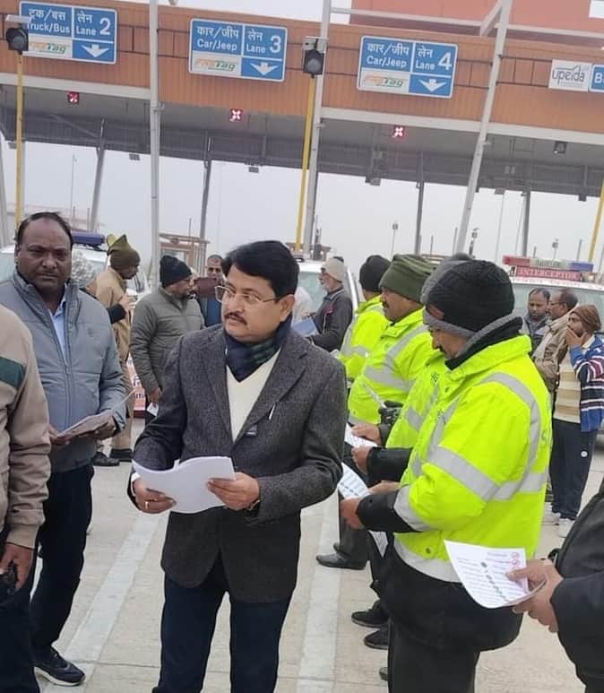 बुंदेलखंड एक्सप्रेस के टोल प्लाजा का निरीक्षण करते उप परिवहन आयुक्त। स्रोत - विभाग