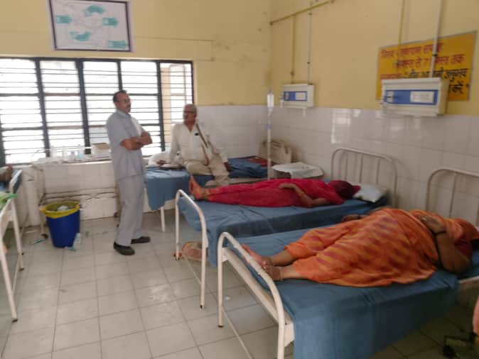 फोटो - 27 गर्मी में भर्ती मरीज व मौजूद तीमारदार। संवाद