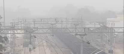 फोटो - 06 दिन में 12 बजे कोहरे की चादर से ढहा बांदा का रेलवे स्टेशन। संवाद