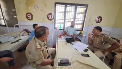 फोटो- 22 अस्पताल के वार्ड में भर्ती मुनीम पुष्पेंद्र का बयान दर्ज करते इंस्पेक्टर दीपेंद्र कुमा