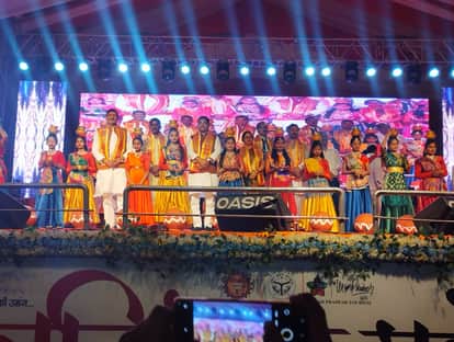 फोटो - 25 महोत्सव के शुभारंभ पर मंच पर मौजूद मुख्य अतिथि व कलाकार। संवाद