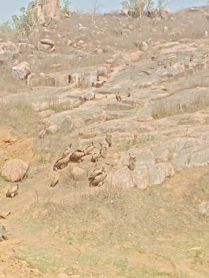 फोटो - 02 गाजीपुर गांव की पहाड़ी में विचरण करते गिद्ध। संवाद