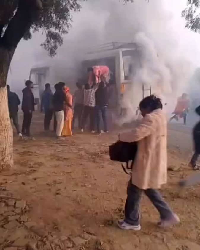 Barabanki News: 54 विद्यार्थियों से भरी बस में लगी आग, शीशे तोड़ कूदकर बचाई जान