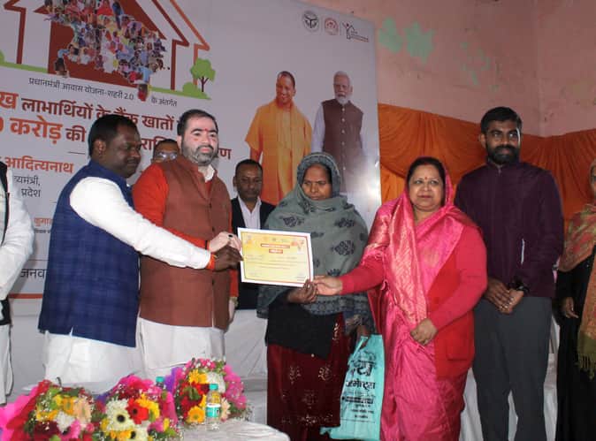 बाराबंकी। पीएम शहरी आवास योजना द्वितीय के लाभार्थियों के चेहरे पर उस समय मुस्कान छा गई, जब लखनऊ में मुख्यमंत्री योगी आदित्यनाथ के बटन दबाते ही एक-एक लाख रुपये का मैसेज मोबाइल पर आया। नगर पालिका परिसर में आयोजित कार्यक्रम में रविवार को जिले के 1,330 लाभार्थियों को स्वीकृति पत्र राज्यमंत्री सतीश चंद्र शर्मा ने बांटे। लाभार्थियों को पहली किस्त मिलने के बाद पक्के घर का सपना साकार होता दिखा। उन्होंने मुख्यमंत्री का संबोधन भी सुना।