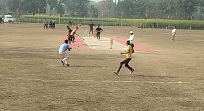 रामसनेहीघाट के सनौली में क्रिकेट खेलते युवक।