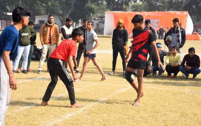 पुलिस लाइन में आयोजित विधायक खेल स्पर्धा में कबड्डी खेलते शिवा क्लब देवा व नूरपुर बंकी के खिल