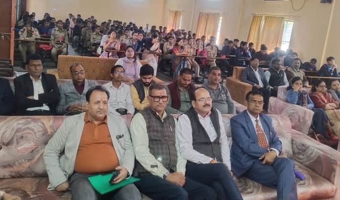 जवाहरलाल नेहरू मेमोरियल पीजी कॉलेज में आयोजित अंतरराष्ट्रीय संगोष्ठी में मौजूद शिक्षक व छात्र