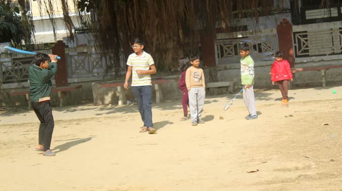 शहर के कंपनीबाग स्थित पार्क में शनिवार को निकली धूप में खेलते बच्चे।