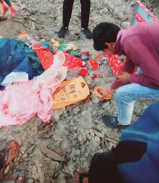 मसौली क्षेत्र के ग्राम गुरेला में चोरी के बाद घर से दूर बिखरा पड़ा समान।