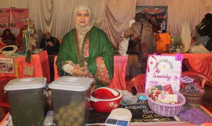 गर पालिका में हुनर हॉट मेले में मूंग की पिंडी का स्टॉल लगाईं सलमा हुमायूं।