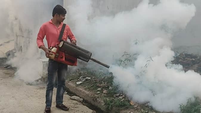 मलेरिया विभाग की ओर से गांवों में कराई जा रही फॉगिंग