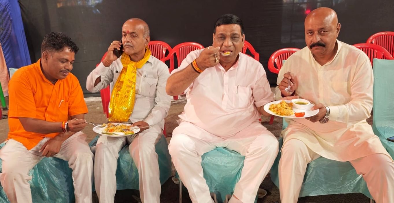 कार्यक्रम में सद्भावना पुलाव का आनंद लेते कैंट विधायक संजीव अग्रवाल व अन्य लोग।