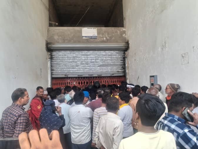 बभनान में चैनल बंद गैस एजेंसी के बाहर जुटी उपभोक्ताओं की भीड़। संवाद