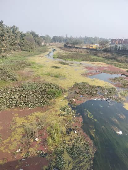 एक्सड़ा पुल के पास मनोरमा में सिल्ट और शैवाल की भरमार। संवाद