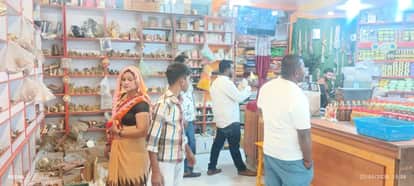 रोडवेज के पास गायत्री मंदिर में सजी दुकान से पूजन सामग्री की खरीदारी करते लोग संवाद