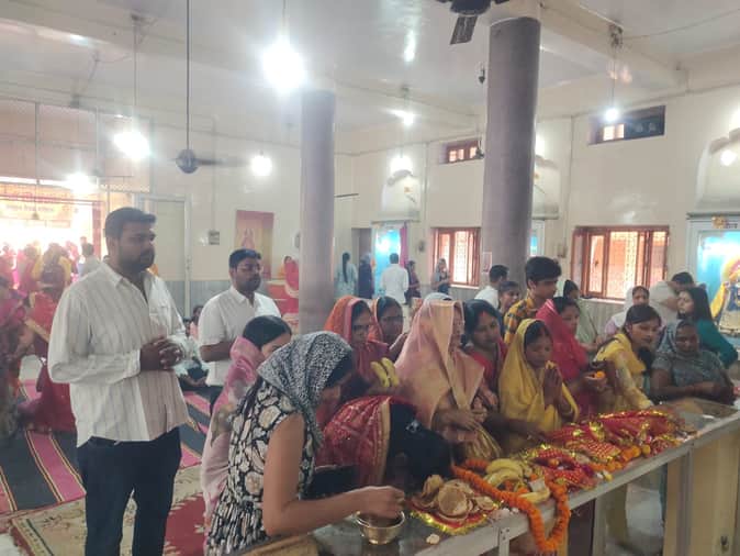नवरात्र नवमी पर गायत्री मंदिर में पूजा-अर्चना व कन्या पूजन करते श्रद्धालु संवाद