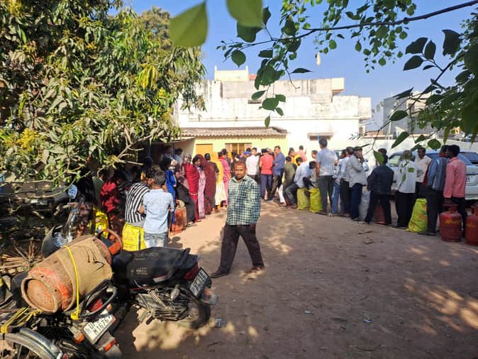 मड़वानगर स्थित गैस एजेंसी पर सिलिंडर लेने के लिए उमड़े लोग, लंबी कतार संवाद