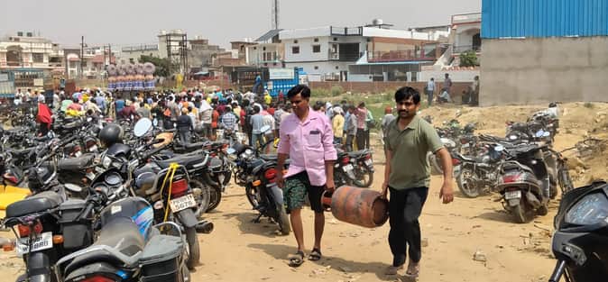 Basti News: तीन बाद राजा साहब के हाता में बंटा सिलिंड, सभी गाेदामों पर लंबी लाइन