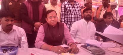 त्रिलोकपुर में बजट पर चर्चा चौपाल में बोलते सांसद डॉ. विनोद कुमार बिंद। स्रोत सूचना विभाग