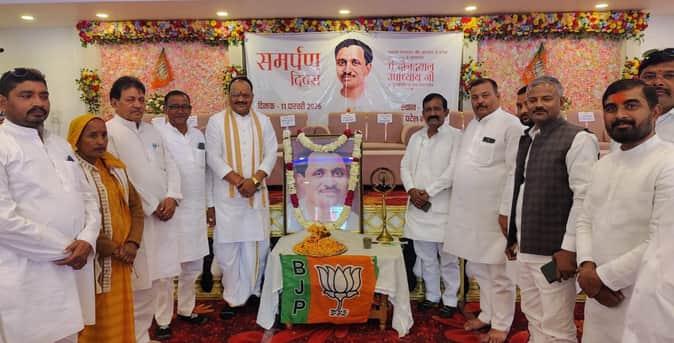 पंडित दीनदयाल उपाध्याय की पुण्यतिथि मनाते भाजपा के पदाधिकारी। स्रोत संगठन