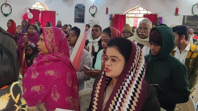 गोपीगंज चर्च में प्रभु यीशु के जन्मोत्सव पर प्राथना में शामिल लोग। संवाद