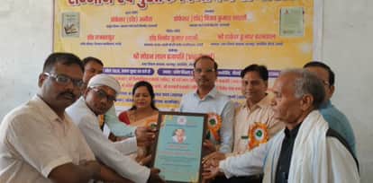 डॉ. विनोद को बेस्ट लाइब्रेरियन का सम्मान देते अतिथि। स्रोत जागरूक पाठक