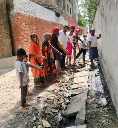 Bhadohi News: ईदगाह वाले रास्ते पर नाला ओवरफ्लो, इंटरलाॅकिंग ध्वस्त