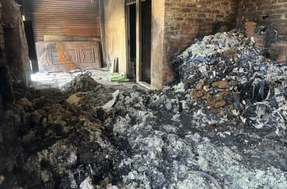 घोसिया में रूई के कारखाने में लगी आग के बचा अवशेष। संवाद