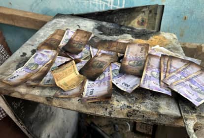 नगर पंचायत घोसिया के अंबेडकर नगर में आग लगने से जली नोट। संवाद
